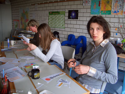 Der Schwerpunkt lag auf der arbeitsintensiven Anfertigung von haltbaren und wiederverwendbaren Unterrichtsmaterialien, mittels Laminiergerät, Schere und "Göldenen Händen". Die Perlen dienen ....(muss noch geklärt werden)