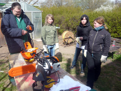| 6 Mädchen der 8. Klasse waren bei der AFW (Arbeitsförderungs- und Fortbildungswerk GmbH) und lernten vieles über den Beruf des Gartenbauers. 3 Stationen waren aufgebaut und wurden intensiv betreut. Frau Sorge konnte wirklich gut von der Arbeit einer Gartengestalterin berichten, Fazit: Die Anforderungen an den Beruf sind sehr hoch! |