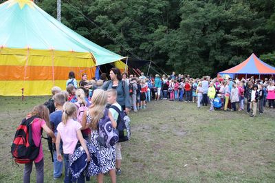 Jedoch hatten die Schüler der zweiten, dritten und vierten Klassen an diesem Tag etwas anderes geplant, nämlich den Besuch des AOK – Kindertheaters. Dazu fuhren sie in den Barnstorfer Wald zum Kastanienplatz. Auf der großen Wiese hatte die Krankenkasse AOK ein Theaterzelt aufgebaut. Außer unserer Schule waren noch mehrere andere Schulen aus Rostock und Umgebung gekommen, um ein Theaterstück zum Thema Familie, Freundschaft und den Regeln des Zusammenlebens zu sehen. Zuerst wurden alle Schüler und Lehrer begrüßt und zu einem Bewegungsspiel mit Schwungtüchern eingeladen. Danach sammelten sich alle in dem Theaterzelt. Mit liebevoll gestalteten Figuren spielten die Schauspieler des PR-Teams der AOK die Geschichte von einem Mädchen, welches nicht zufrieden ist mit seinen Eltern und sich am liebsten weit weg wünscht von seiner Familie. Mit Quassel, einem Weltraumpiloten, fliegt sie zu einem Planeten, wo man z.B. nicht aufräumen oder sich nicht waschen muss. Leider muss sie dort feststellen, dass das unordentliche Leben mit den „Wilden“ auch sehr anstrengend ist. Auf dem Weg zu anderen Planeten erlebt sie viele Abenteuer mit unterschiedlichen Wesen, die alles das nicht machen müssen, was die Eltern zu Hause von ihr verlangen. Jedoch stellt sie am Ende fest, dass dieses Leben ihr nicht gefallen würde. Plötzlich vermisst sie ihre Eltern und ihr Zuhause sehr. Schnell fliegt sie mit ihrem Freund Quassel zurück zum Heimatplaneten und schließt ihre Eltern freudig in die Arme. (A. Sommer) |