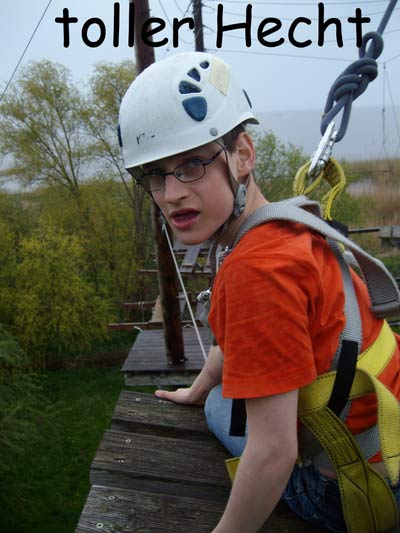 Ich berichte euch etwas über das Klettern beim Zerum in Ückermünde. Am Dienstag traf ich mich mit vielen Freunden und 2 Damen, die uns beim Klettern sicherten, am Kletterpark. Sie erklärten und zeigten uns z.B. die Sicherung. Als wir alles über die Sicherung erfahren hatten, konnte der Erste raufklettern. Später als man in der Mitte war, konnte man herunter klettern oder sich auf den Boden gleiten lassen. Die Mutigen durften bis auf die Plattform nach ganz oben klettern. Dort hatte man eine schöne und gute Aussicht und konnte sogar das Nachbarland Polen sehen. Als man den sicheren Boden erreichte, konnte man die Sicherungsweste ausziehen. Zum Schluss machten wir eine kleine Verabschiedung mit Foto. Dennis Schneider