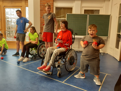 Die Sportler der Klassenstufen 5-9 trafen sich dann zu gemeinsamen Turnieren im Boccia, Fußball, Tischtennis, Basketball und Rollstuhlbasketball.