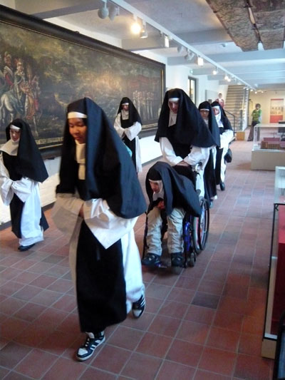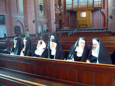 Die Klosterschwestern lauschen hingebungsvoll |