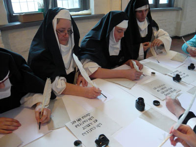 Eine der Hauptarbeiten im Kloster- Bücher abschreiben unter Aufsicht von Mutter Oberin |