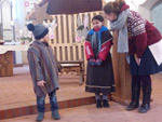 mit 17 Kindern aus Syrien, Iran, Türkei und Russland und der Schulleiterin, Frau Tödt, Frau Naumann und dem Bufdi. Da haben wir die Weihnachtsgeschichte gehört. Wir sind mit dem Schulbus gefahren. Wir haben die Geschichte von Maria und Joseph und Jesus gespielt. Wir hatten Kostüme für Engel, Hirten und Könige. Zum Schluss haben wir uns die Kirche angeguckt. Die Wände haben schöne Malerei. Jetzt wissen wir, wie in Deutschland Weihnachten gefeiert wird.